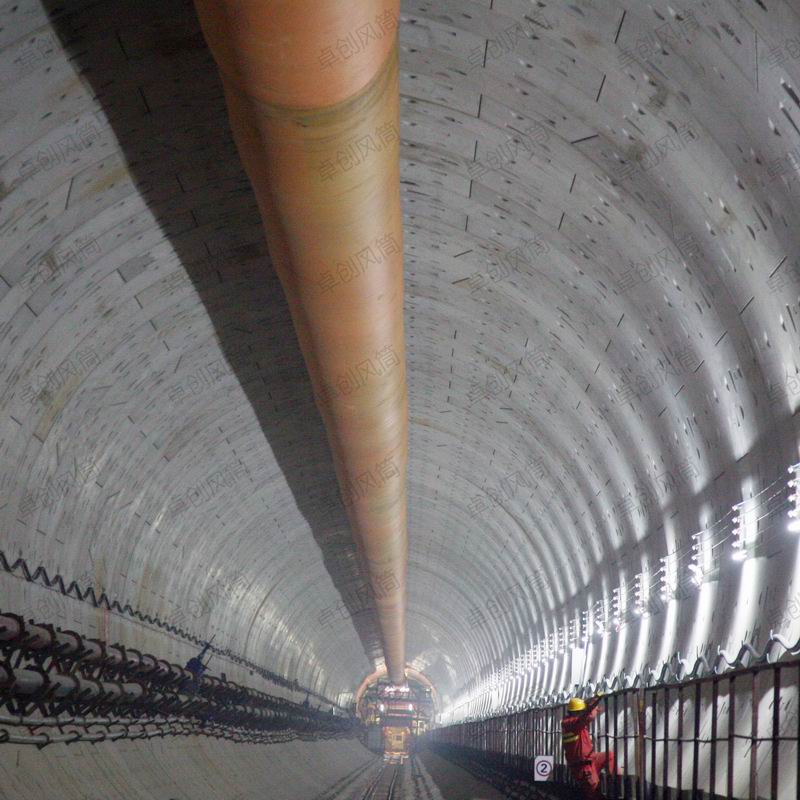 隧道風筒是用于隧道、井下局部扇風機進行正壓通風,它的通風方式:當自然風由隧道風筒布口流向通風豎井時,可采用射流巷道式通風。新風由隧道風筒布直接送到掌子面,掌子面污濁空氣、沿途污濁空氣流向通風豎井,經豎井排出洞外。